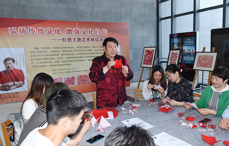 “钟山风雨起苍黄,百万雄师过大江。这张剪纸给大家展示的是南京解放这一百年党史中的重大事件。”5月21日上午,在我校图书馆报告厅,非遗传承人、南京剪纸艺术家陈耀应校工会邀请来到这里,通过一幅幅生动的剪纸作品与师生共同回顾百年党史红色记忆、共同体验中国剪纸艺术魅力。陈耀具有“中国神剪”美誉,是中国民间文艺家协会会员、南京市工艺美术大师、非遗传承人、中国民间剪纸艺术家,曾获中国乡土艺术手工艺杰出贡献奖,...