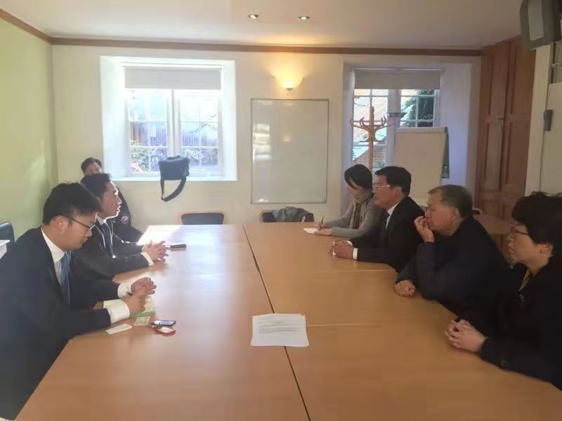 10月22日,史国君书记率代表团访问剑桥大学。上午,史书记会见了英中发展协会理事长姜政博士和运营与国际合作部总监周锐钢博士。他介绍了我校的基本情况,学科和科研的发展情况,以及我校实行的科技创新“1111”计划。姜政博士介绍了英中发展协会,他表示,英中发展协会是在中英两国促进文化教育交流的大背景下成立的专门为两国高校搭建交流平台的机构。他希望通过努力,能够继续为凯发k8官网的发展做出贡献。经过深入交流,双方将在访问学者,学生交流,教师学术互访,合作办学,高层次人才引进等方面进行全面合作。