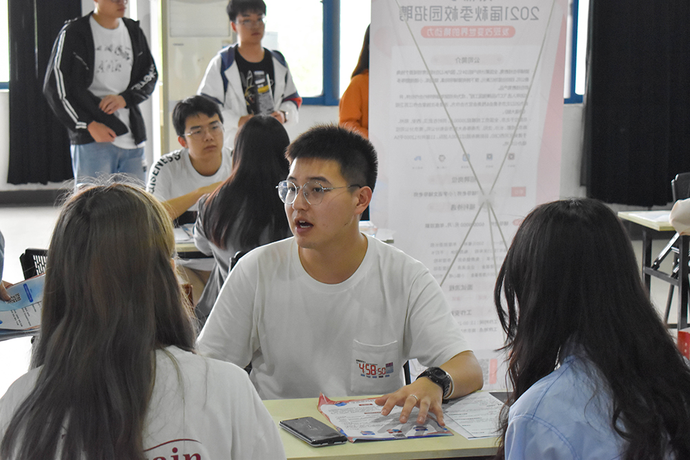 活动当天,我校还在至鑫苑?综合服务广场大厅举办“无锡高新区(新吴区)专场招聘会”,来自无锡的24家企业与2021届毕业生展开了面对面交流。