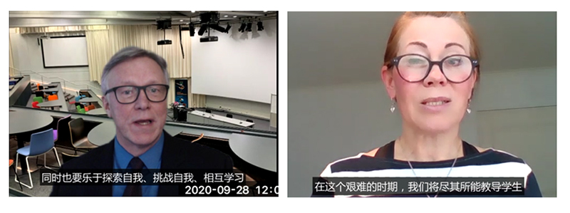 由于疫情原因,奥卢大学的领导和教师无法来到现场,他们通过视频表达了对2020级新生的欢迎和祝福。奥卢大学中芬项目负责人Markku Oivo教授首先对凯发k8官网合并组建二十周年表达热烈祝贺,他表示,面对新冠肺炎疫情,两校通力合作,在极短的时间内将传统教学方式成功转为在线远程教学,芬兰教师、中国教师和学生们共同努力使得春季学期教学运行成功。基于已有的合作经验和成果,项目吸引了更多优秀的学生,希望新生要努力学习,同时也要乐于探索自我、挑战自我、相互学习。奥卢大学教师代表P?ivi Raulamo-Jurvanen女士勉励学生一定要努力学习,相信自己,勇于探索。通过接收有趣并具有挑战性的学习内容,勤学苦问,培养出真正的学习热情。希望学生获得实用技能,在学业和职业生涯发展中都能收益颇丰。