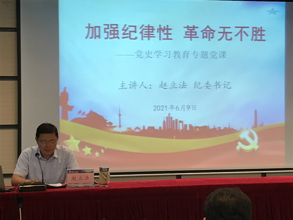 6月9日下午,校党委常委、纪委书记赵立法以“加强纪律性 革命无不胜”为题作党史学习教育专题党课报告。环境凯发和机关党委第九党支部全体党员聆听了党课。