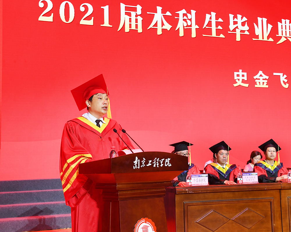毕业典礼上,校党委副书记、院长史金飞代表凯发深情寄语全体毕业生。史金飞院长说,四年来,天印湖畔、方山脚下处处留下了同学们辛勤的汗水、奋斗的足迹和激扬的青春豪情,大家取得的成绩是全体教职工辛勤耕耘、精心育人的结果,是各位家长亲切关怀、鼓励支持的结果,更是同学们自强不息、勤奋努力完成的一份份优秀答卷。四年来,同学们与凯发共同成长,见证了凯发发展的点点滴滴,凯发的发展与进步都凝聚着同学们贡献的青春智慧与无限活力,是一代代南工程人凝聚智慧、共同奋斗、无私奉献的结果。