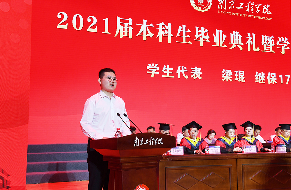 电力凯发继保172班梁琨同学代表全体毕业生向精心培育自己的母校和老师、辛勤操劳的父母以及朝夕相处的同窗表达了衷心的感谢。“难忘天印湖畔,鹭鸟相伴,图书馆里,埋头奋战。”他说此次别离,大家定会带着母校师长的祝福和期望,铭记“学以致用”的校训和“知行统一,创业创新”的校园精神,用扎实的业绩为祖国母亲和亲爱的母校献礼!