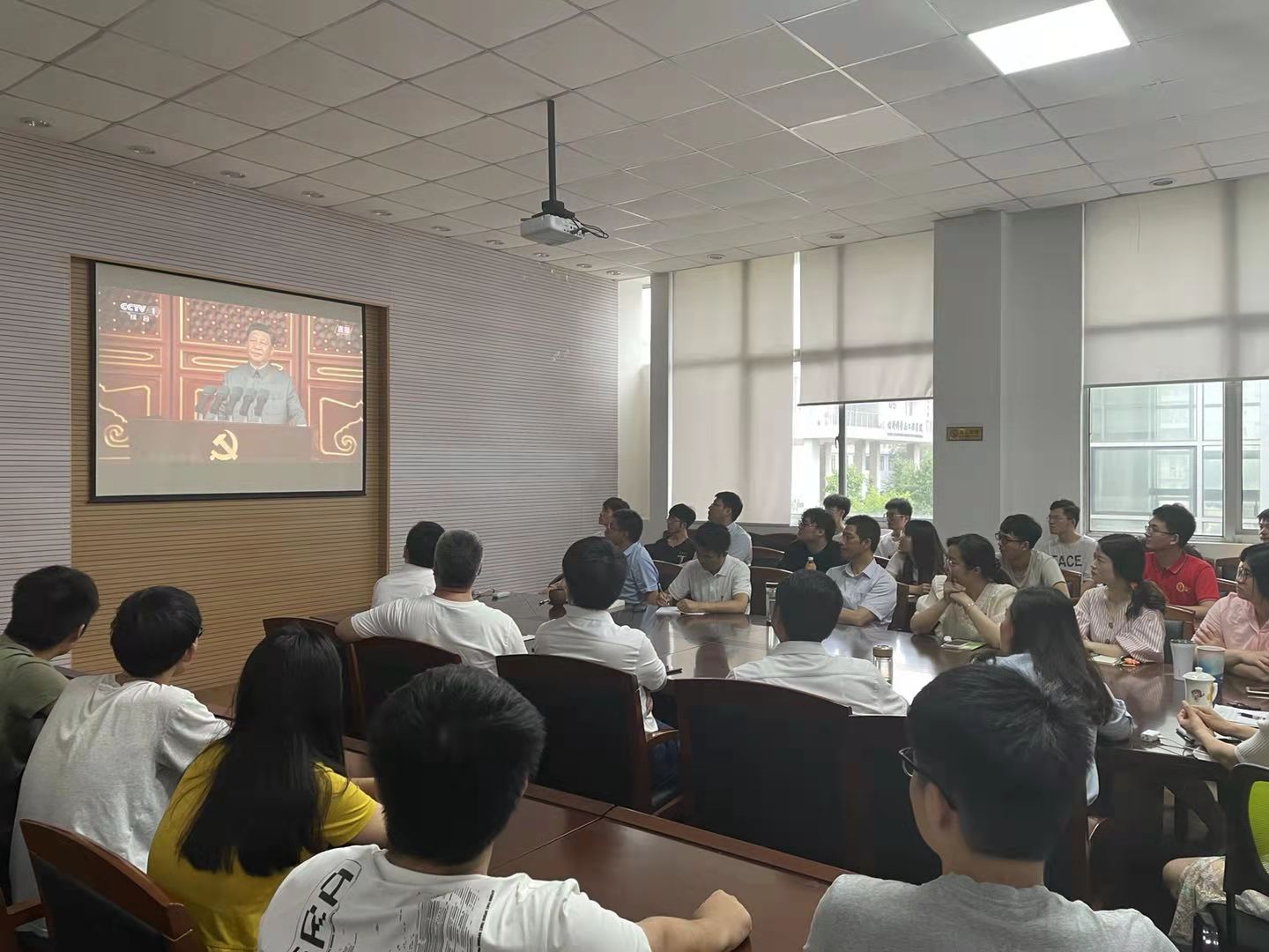 2021年7月1日上午8时,庆祝中国共产党成立100周年大会在北京天安门广场隆重举行,中共中央总书记、国家主席、中央军委主席习近平发表重要讲话。在这全党、全军、全国各族人民永远值得铭记、骄傲和自豪的日子,在庄严的升国旗仪式之后,我校党委、各基层党组织,各单位各部门积极组织师生集中收看收听庆祝大会直播。
