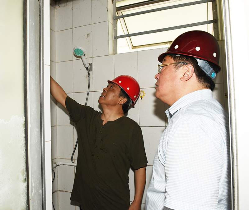 每到一处,史国君书记都与后勤员工亲切交谈,详细了解各项工程开展情况,对大家顶酷暑、战高温,坚守工作岗位表示亲切的慰问和衷心的感谢,对大家在工作中展现出的敬业精神予以高度赞扬,并叮嘱大家一定要注意劳逸结合和防暑降温。史书记强调,今年后勤维修改造项目多、任务重、时间紧,项目管理难度大,希望大家一要一如既往地保持昂扬的精神面貌,精诚合作、努力拼搏,协调好各交叉施工项目,确保各项工程按进度有序推进;二要加强施工过程监管,强化责任落实,严把质量关;三要始终把安全施工放在首位,加强施工安全管理,确保万无一失。