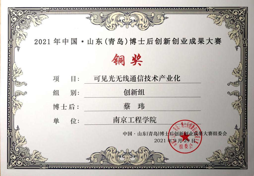 近日,“博揽英才 创领未来”2021年中国·山东(青岛)博士后创新创业成果大赛颁奖典礼在青岛市举行。我校计算机凯发蔡玮副教授在此次大赛中荣获铜奖。其参赛项目“可见光无线通信技术产业化”,基于自主研发的高速谐振腔发光器件,设计实现了一种海陆空全覆盖的可见光无线通信系统。该系统能够实现高速率、低延时的高清晰音视频和大容量数据传输,适用于传统射频信号无法有效覆盖的复杂场景,是一种面向国家海洋战略,以及军、民用通信技术的全新解决方案。