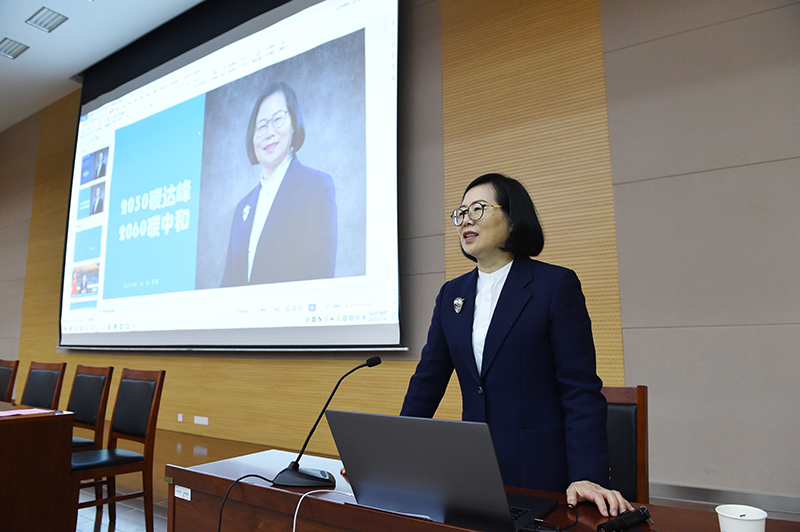 聘任仪式后,李青作了题为《应时建筑设计---2030碳达峰2060碳中和》的学术报告,她全面讲述了绿色建筑新材料的运用价值以及国内外节能建筑的成功案例,为参会师生上了一堂生动有趣而又内涵丰富的专业理论课。