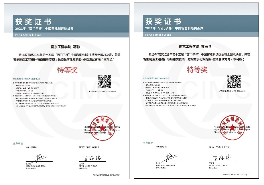 11月7日-11日,第十五届“西门子杯”中国智能制造挑战赛全国总决赛在线上举行。我校工业中心马聪、苏辰飞同学以全国第一的优异成绩荣获“数控数字化双胞胎——虚拟调试赛项”特等奖。