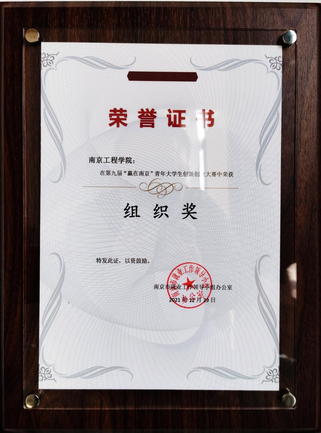 我校获第九届“赢在南京”青年大学生创新创业大赛组织奖