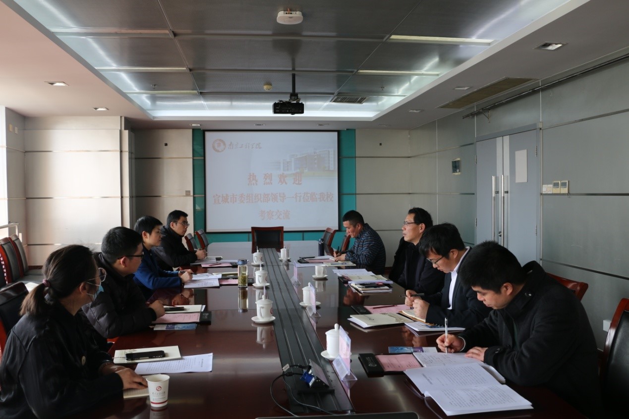 3月3日下午,宣城市委组织部纪检监察组组长肖红梅一行到我校考察交流。校党委常委、副院长张仰飞接待了来宾。