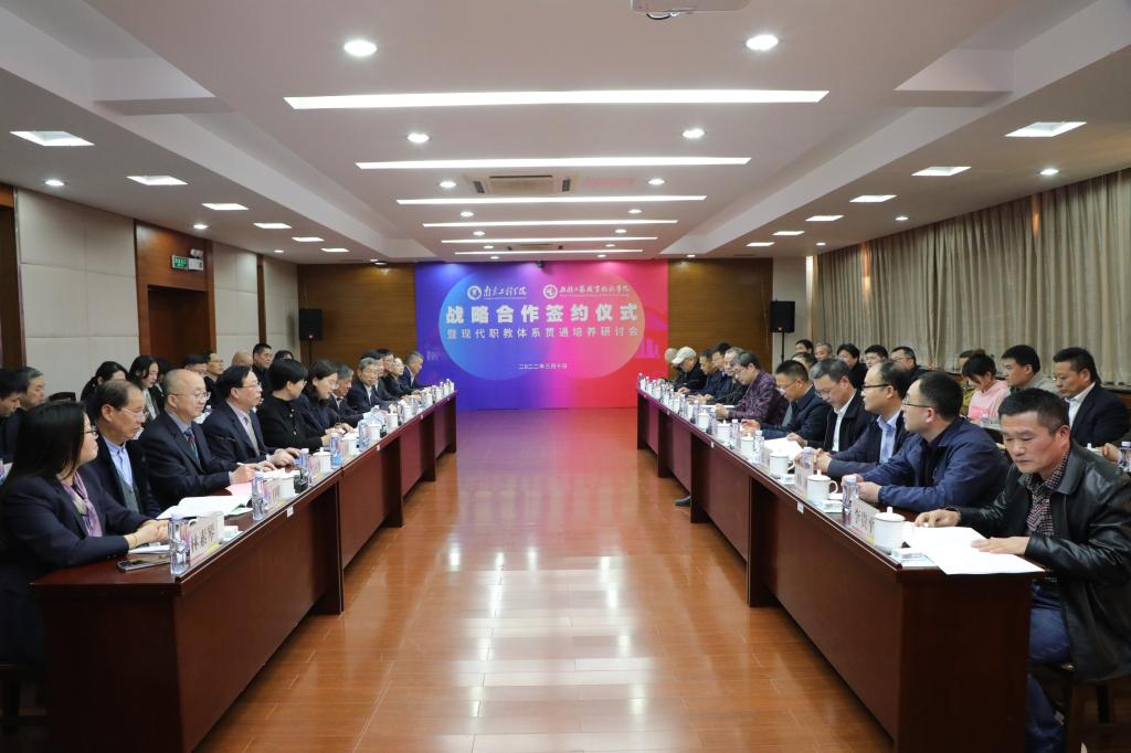 3月10日下午,党委副书记、院长史金飞,党委常委、副院长郑锋应邀带队赴陶都宜兴,参加与无锡工艺职业技术学院的战略合作签约仪式暨现代职教体系贯通培养研讨会。该校党委书记魏萍,党委副书记、院长邵汉强热情接待了我校一行。