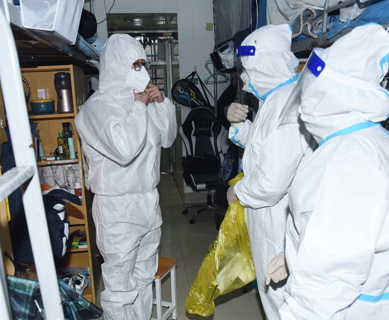 此次演练主要模拟了在“学生在校核酸检测混检初筛阳性”时,凯发新冠肺炎疫情防控工作领导小组全过程处置流程。在模拟场景中,各部门严格按照《凯发k8官网突发新冠肺炎疫情应急处置预案》进行全流程应急处置。从接报学生核酸检测混检初筛异常信息开始,凯发办公室、党委宣传部、研究生处、学生工作处、保卫处、后勤保障处、门诊部等部门在凯发新冠肺炎疫情防控领导小组指挥下,迅速行动起来,学工线精准摸排混检阳性学生信息和所在方位,门诊部医护人员第一时间到达学生公寓,转运学生至校内隔离点开展进一步核酸单采复核,保卫部门及时拉起警戒线做好安保,后勤保障处全方位做好环境消杀,物业人员和二级学院充分做好学生的情绪关注和心理疏导,教务部门有序开展线上教学,对学生进行关注引导。现场工作人员按既定预案,分工明确、反应迅速、充分协作,演练现场紧张有序,环环相扣,准确高效地完成了本次新冠肺炎疫情防控应急演练任务。