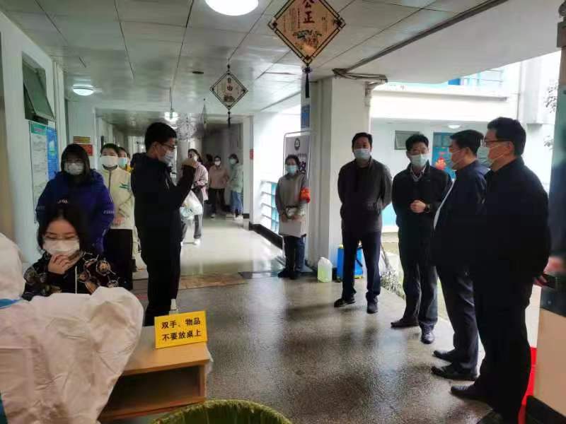 3月25日,正值江宁区开展新一轮全员核酸检测,江宁区政府副区长、党组成员、江宁高新区党工委书记王爱军一行以“四不两直”方式到我校检查指导新冠肺炎疫情防控工作。
