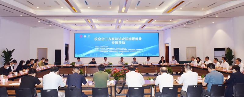 为进一步贯彻落实党中央、国务院关于高校毕业生就业工作的决策部署,5月30日,在全国科技工作者日这天,校党委副书记、院长史金飞率队开展“访企拓岗促就业”专项行动,与江苏省科学技术协会各学会及会员企业代表座谈交流,向与会科技工作者致以节日祝福,并推介我校毕业生,开启校会企联动促就业新模式。党委常委、副院长张仰飞,学生工作处、相关学院(中心)负责人参加活动。