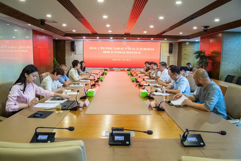 7月18日下午,我校与南京牛首山文化旅游区签订战略合作协议,签约仪式在牛首山文化旅游区管委会举行。我校党委书记史国君,党委常委、副院长朱晓春;牛首山文旅区管委会党工委书记贝淑芳,管委会主任薛松,副主任屠建、汤箬梅出席签约仪式。