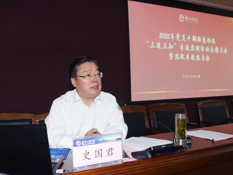 张仰飞副院长在主持会议时指出,当前是我校加快一流应用型工程大学建设、提升事业发展内涵的关键时期。立足新发展阶段,希望全体党员干部深刻领会“三全育人”理念目标,在当前从“三全育人”到构建一体化大思政格局、到善用“大思政课”的背景下,不断优化全员全过程全方位育人格局,建设“大课堂”、搭建“大平台”、建好“大师资”,在持续推动“三进三知”专题实践活动中上好新时代“大思政课”,以优异成绩向党的二十大献礼。