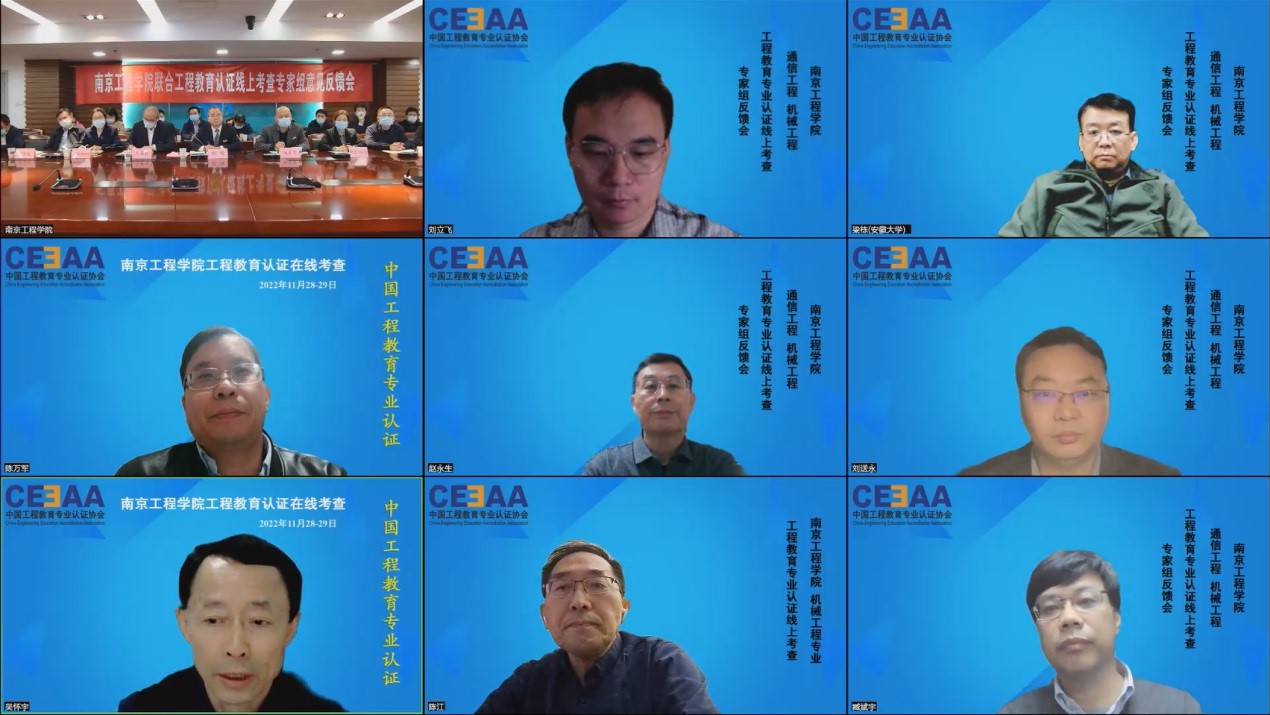 联合组长臧斌宇教授介绍了此次在线考查的目的和内容,并指出,专家组将在前期研读自评报告的基础上,通过见面会、座谈、访谈、教学资料调阅、查看实验教学环境等环节对专业人才培养情况进行全方位的深入考查。机械工程专业和通信工程专业负责人进行了汇报并接受专家组提问。专家组一行还就自评报告有关问题提问,相关职能部门、学院负责人进行了解答。