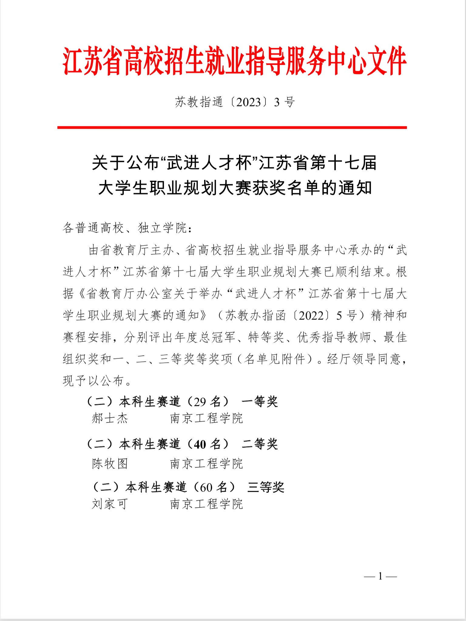 江苏省大学生职业规划大赛被公认为全省最具权威性的大学生生涯教育品牌赛事,在全面普及大学生职业规划知识,传播生涯成长理念,提高大学生的创新能力、实践能力和就业创业能力等方面发挥重要引导作用。本届比赛由江苏省教育厅主办、省高校招生就业指导服务中心承办,吸引了全省133所高校的23万余名学生报名参与,442名选手入围省级复赛,60余所高校的95名选手晋级总决赛,其中本科生赛道40人。