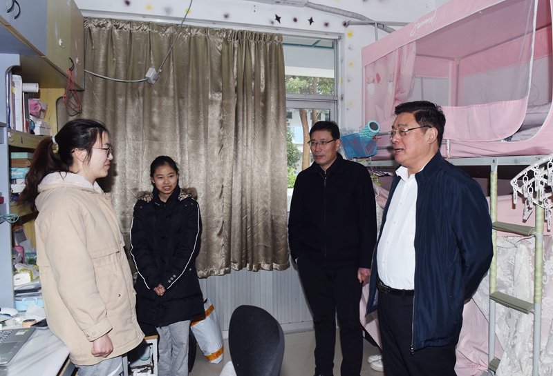2月20日是新学期正式上课第一天,当天上午,党委书记史国君,党委副书记、院长史金飞,党委常委、副院长张仰飞、郑锋与相关职能部门负责人一起,来到教学楼、马克思主义学院以及学生公寓、学生食堂等场所,全面了解新学期教学工作开展情况、各项工作运行情况和学生学习生活情况。