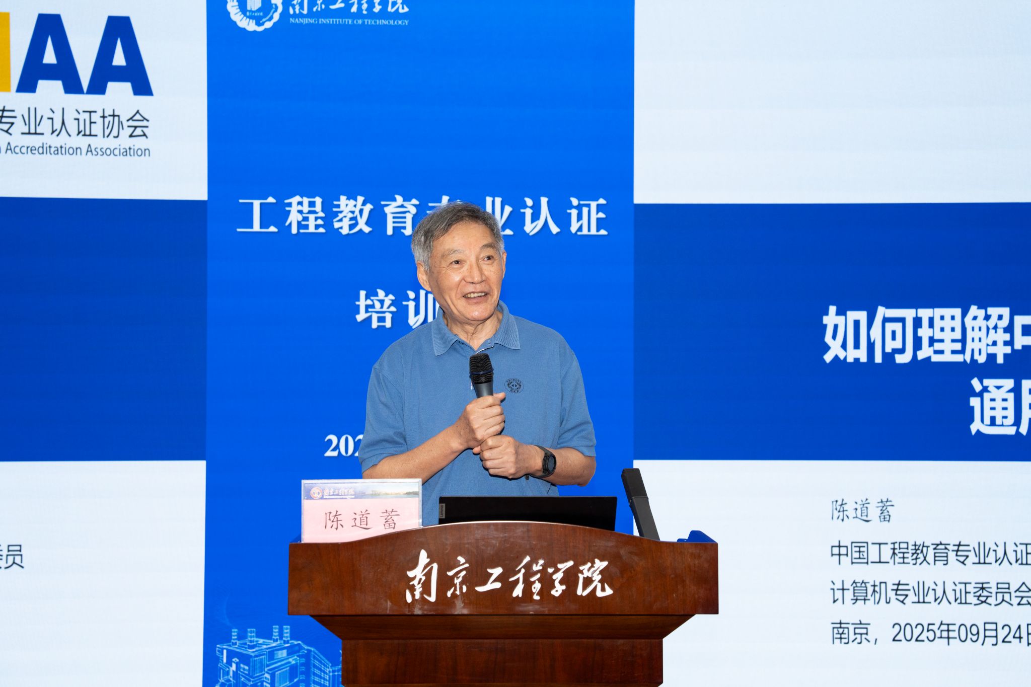 会上,陈道蓄以《如何理解中国工程教育专业认证通用标准2024版》为题,从标准修订的整体框架、标准修订对学生能力的新要求、课程教学如何落实新要求、质量监控如何保证有效举证等四个方面,详细解读了“执行新标准,如何抓住主线、如何守住底线”“如何看待新标准中的几个关键字”“课程如何支撑目标达成”“如何构建面向产出的内容评价机制”等核心内容。他还结合“人工智能+”行动意见,深入剖析了人工智能对高等教育及课堂教学带来的深远影响。